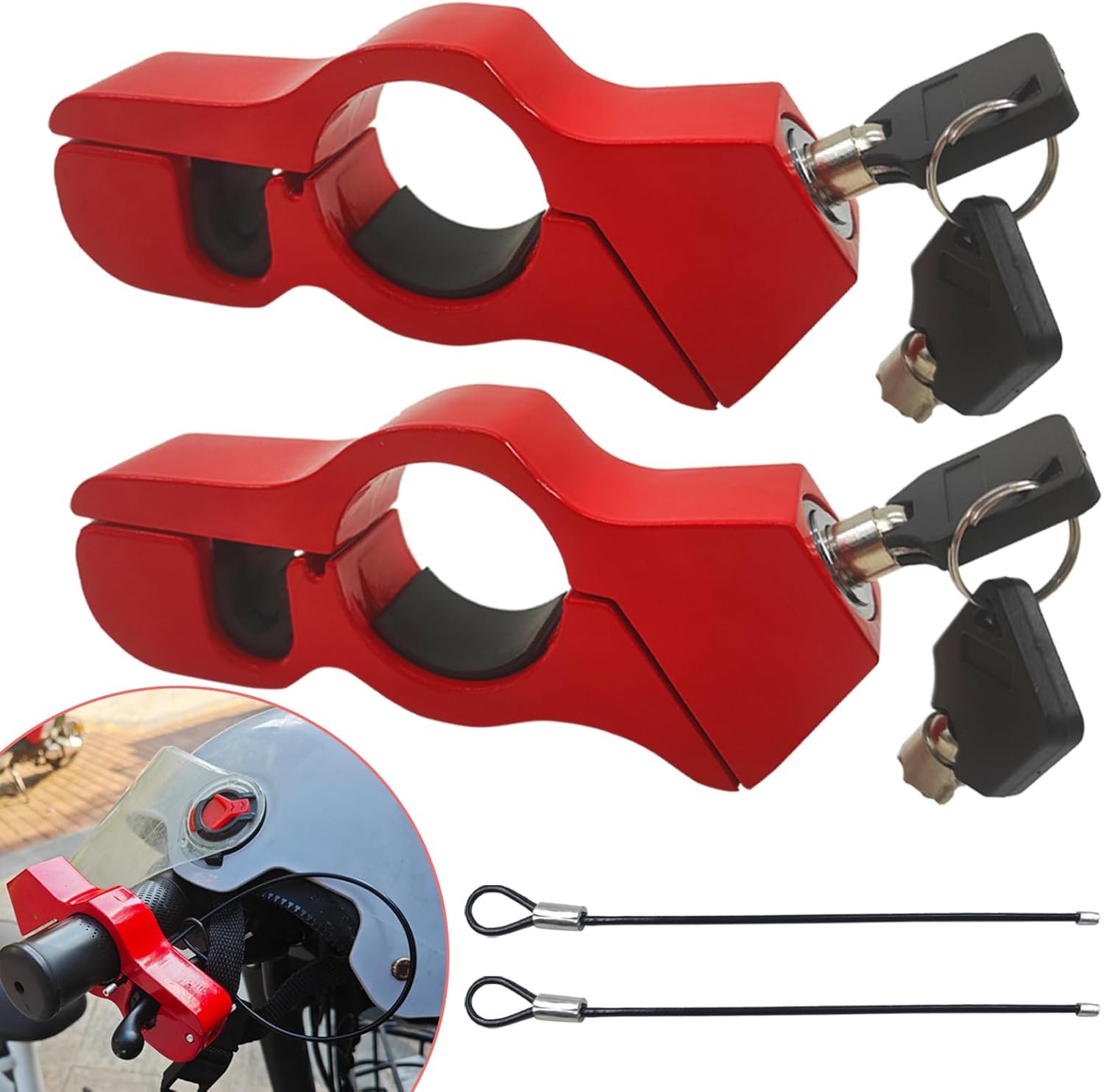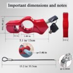 【Quality materials】The motorcycle handlebar lock is made of heavy-duty antioxidant metal with anodized antioxidant layer plating on the surface, and the helmet pull cable is made of stainless steel, which is rust-proof, strong, and not easy to be deformed, so you don’t have to worry about being damaged by thieves.