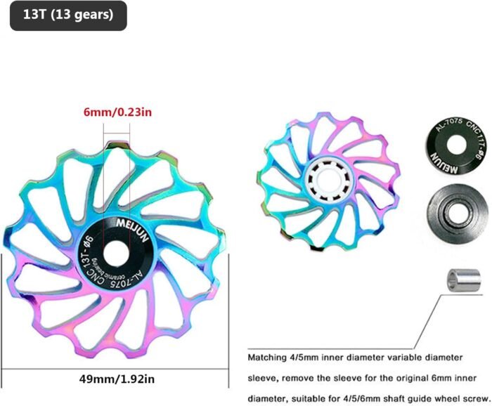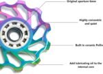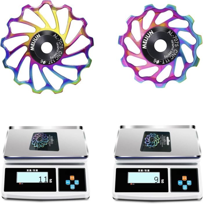 Aluminum Construction – Crafted from aluminum alloy for a featherweight 9g per pulley, minimizing rotational inertia for quicker gear shifts. – Reinforced design maintains structural integrity under high pedaling forces.