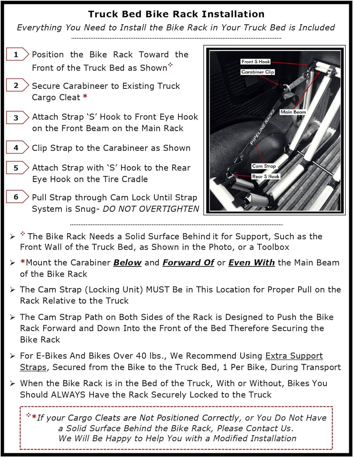 Effort-free Installation – Installation has never been easier – no holes to drill in your truck! This Truck Bed Bike Rack comes complete with wheel straps, all needed hardware, and it fits any full-sized truck with a minimum bed width of 58.5. The perfect truck bed bike mount solution