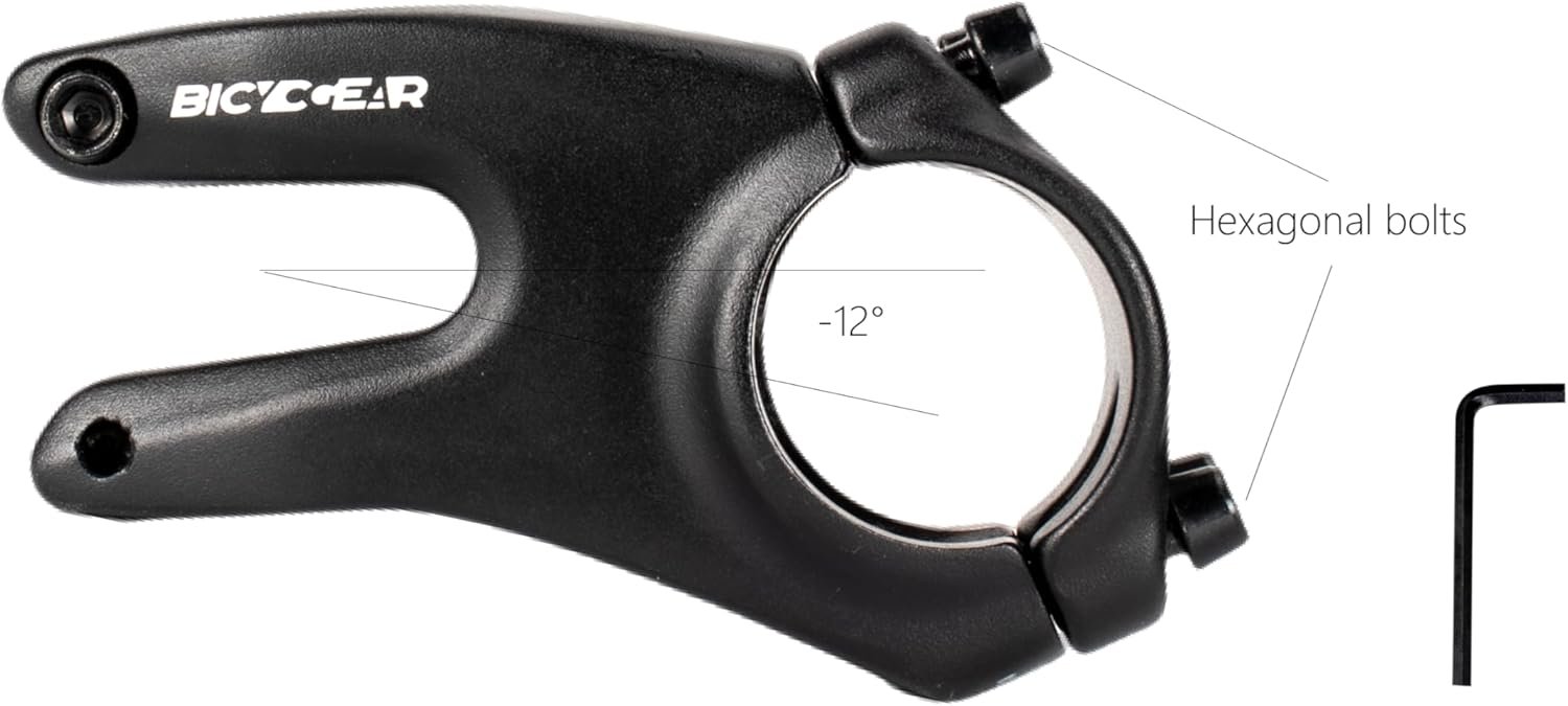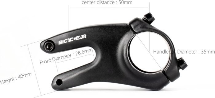 DIMENSIONS: Handlebar Diameter: 31.8mm, Front fork tube Diameter: 28.6mm, Length: 50mm (center distance of the two holes), Angle: -12 degree, Height: 40mm, Weight: 150g, 4mm wrench for installation .