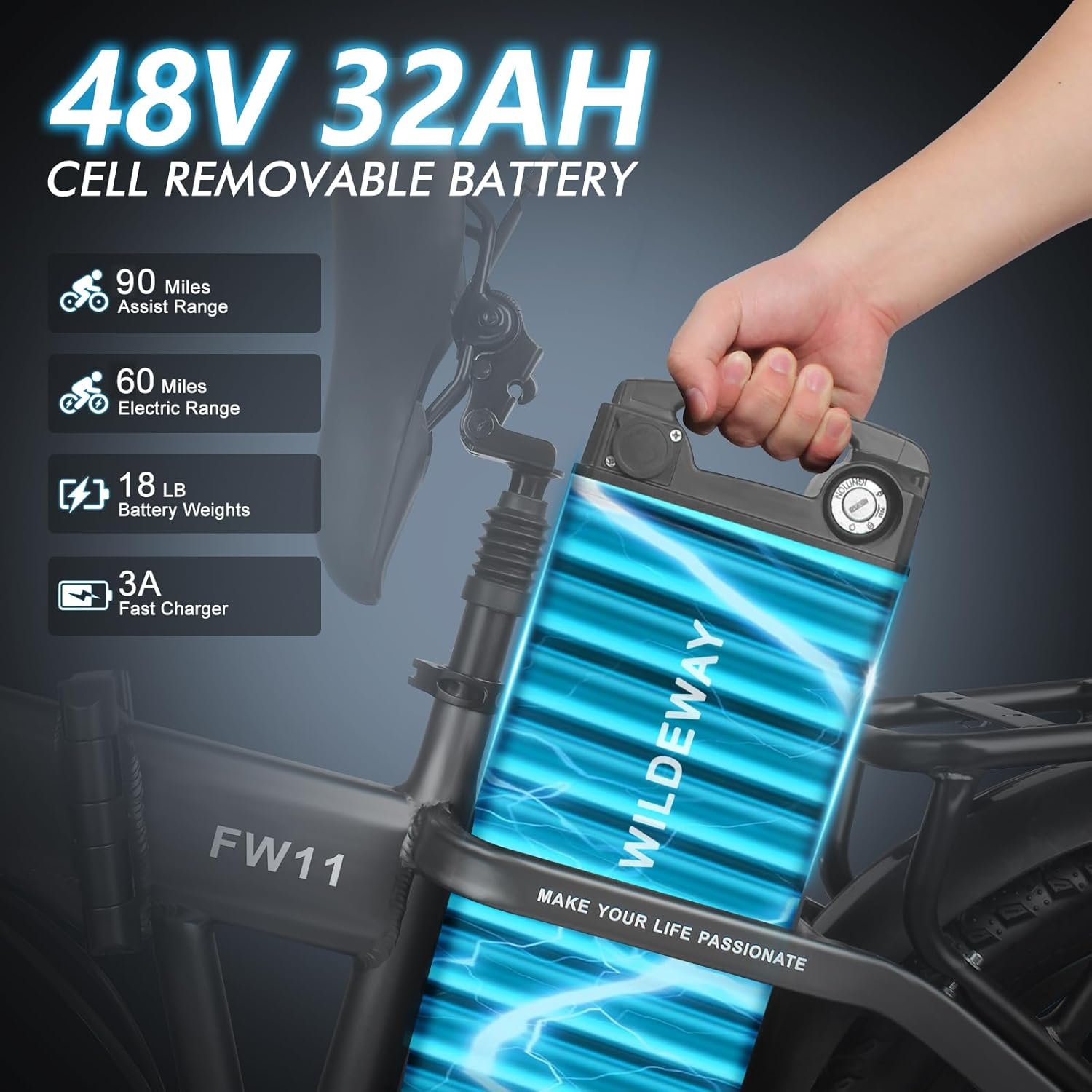 【Powerful Motor & Long Mileage】 Wildeway electric bike is equipped with a 750W 48V motor, which can easily climb a 30 degree slope. The built-in 32AH high-capacity battery can provide more power and range for daily commuting and adventure. Maximum speed of 28MPH, 60 Miles in Electric Mode, 90 Miles in Assist Mode