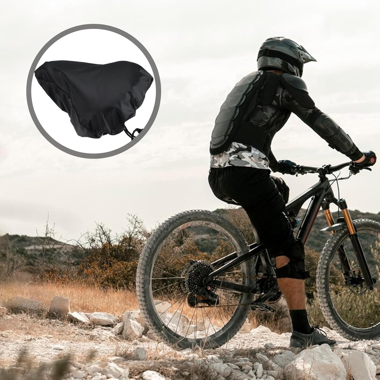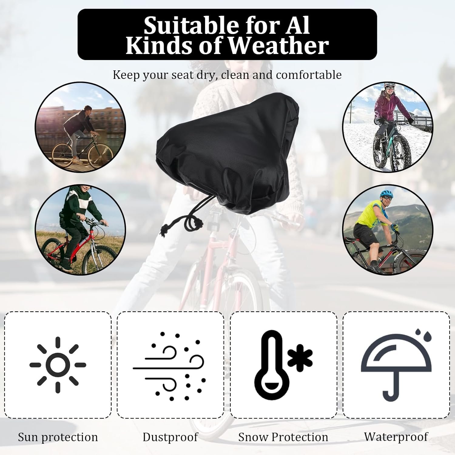 [Waterproof Protection] Our bicycle seat cover, made from durable Oxford cloth, protects against rain, dust, and UV rays. The seamless design prevents water seepage, keeping your seat dry