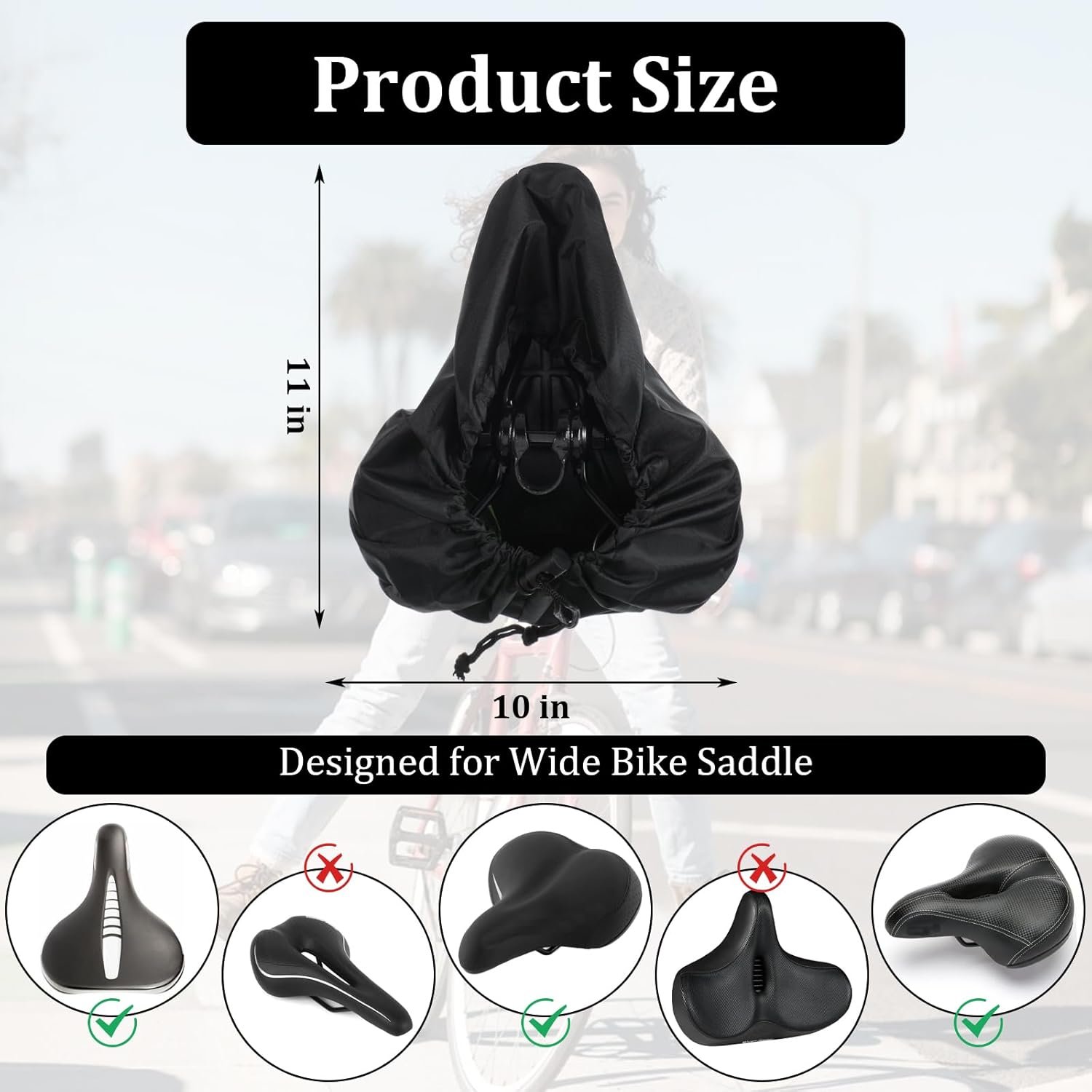 [Universal Fit] With an elastic drawstring, our bike seat cover fit most bike saddles, including road, city, and mountain bikes. Sized at 14.57 X 10.23 X 0.08 in, they provide a snug fit without slipping or discomfort