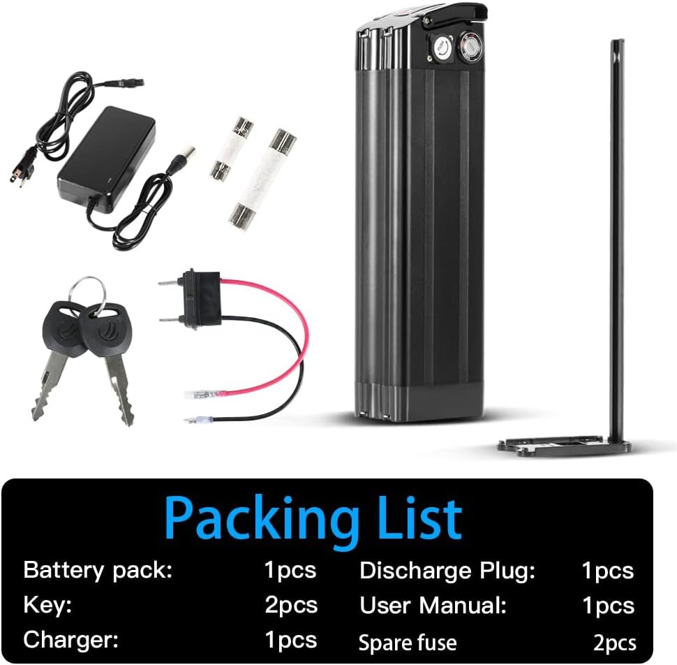Easy to Install: Please use keys to unlock the battery holder base to take it off from the battery then install the battery on the bike seat tube.The discharge port of this battery is 2pins