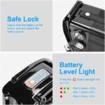 Convenient and Safe Lock Design: This electric bicycle battery has a built-in lock, which can effectively prevent the battery from being stolen also control the battery power. The battery has a standard 48V 10A output port and a status indicator light. Press the power button twice to turn on the indicator light.Two seconds later it will turn off directly.