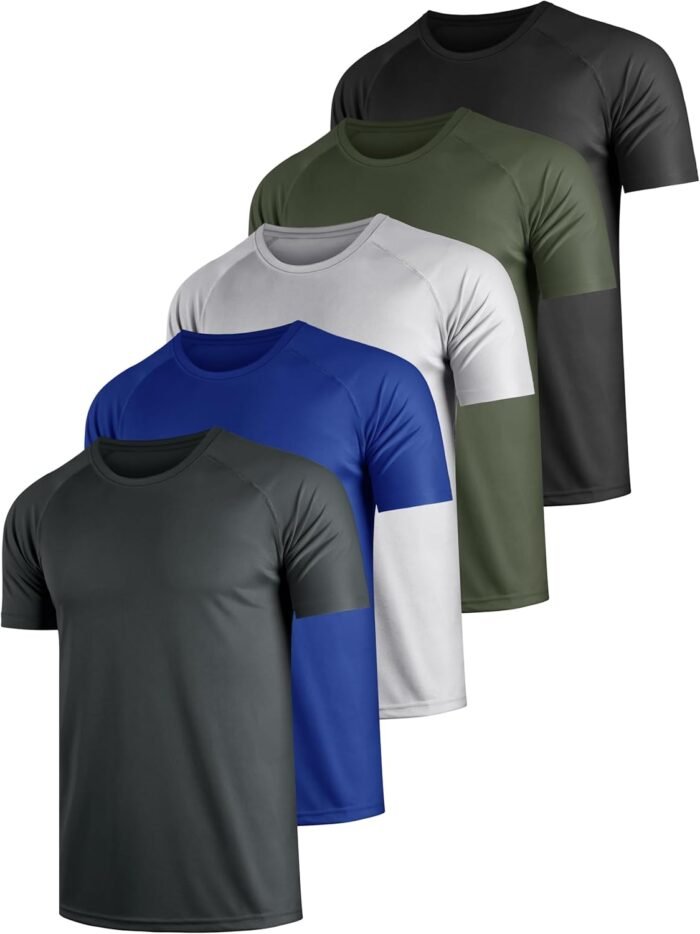 5 Pack Men’s Mesh Dry Fit Moisture Wicking Quick Dry Tech Performance Shirts Workout Gym Short Sleeve