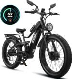 Comfort and Versatility: This fat tire electric bike comes with dual front suspension and rear shocks to reduce impact and strain during rides. Its 26-inch wheels, 4-inch tires, and SHIM 7-speed system offer excellent grip across diverse terrains. Front and rear disc brakes ensure safe, responsive stopping, whether on mountain trails or city streets