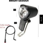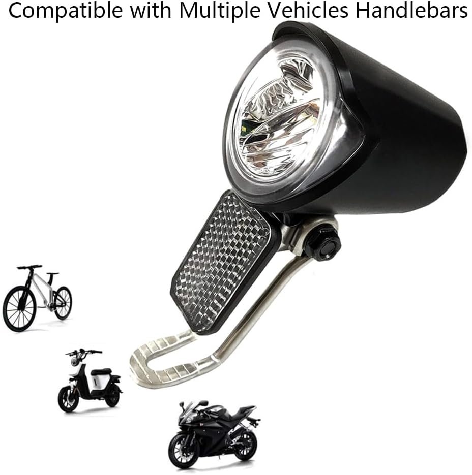 WIDE APPLICATION: Electric Bike Front Light This ultra-bright headlight is specially designed for widely electric bikes with a universal voltage range of 6V-60V, perfect for city and road cycling. In addition to cycling, it is also widely suitable for camping, hiking, climbing, and other occasions where visibility and safety are required.