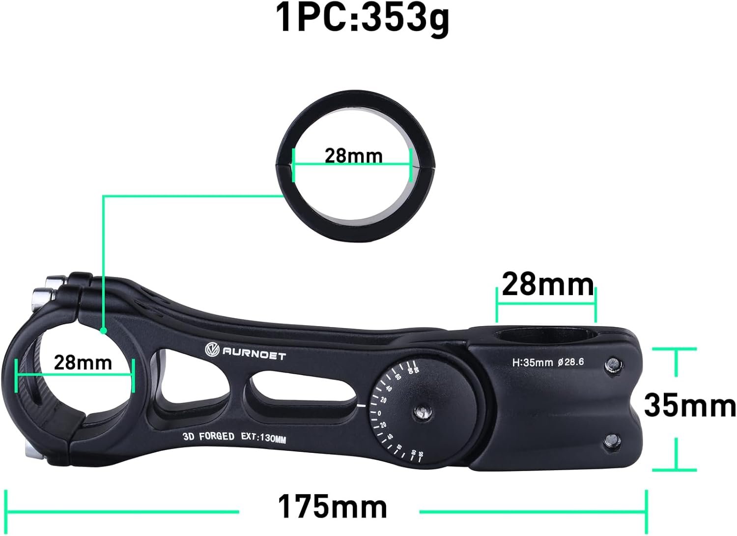 Compatibility: Aurnoet bike stem suits for the diameter of handlebar 31.8mm (1-1/4”) and 25.4mm (1”), front fork stem diameter 28.6mm (1-1/8″), and is available in a range of lengths 90mm, 110mm, 130mm and 145mm