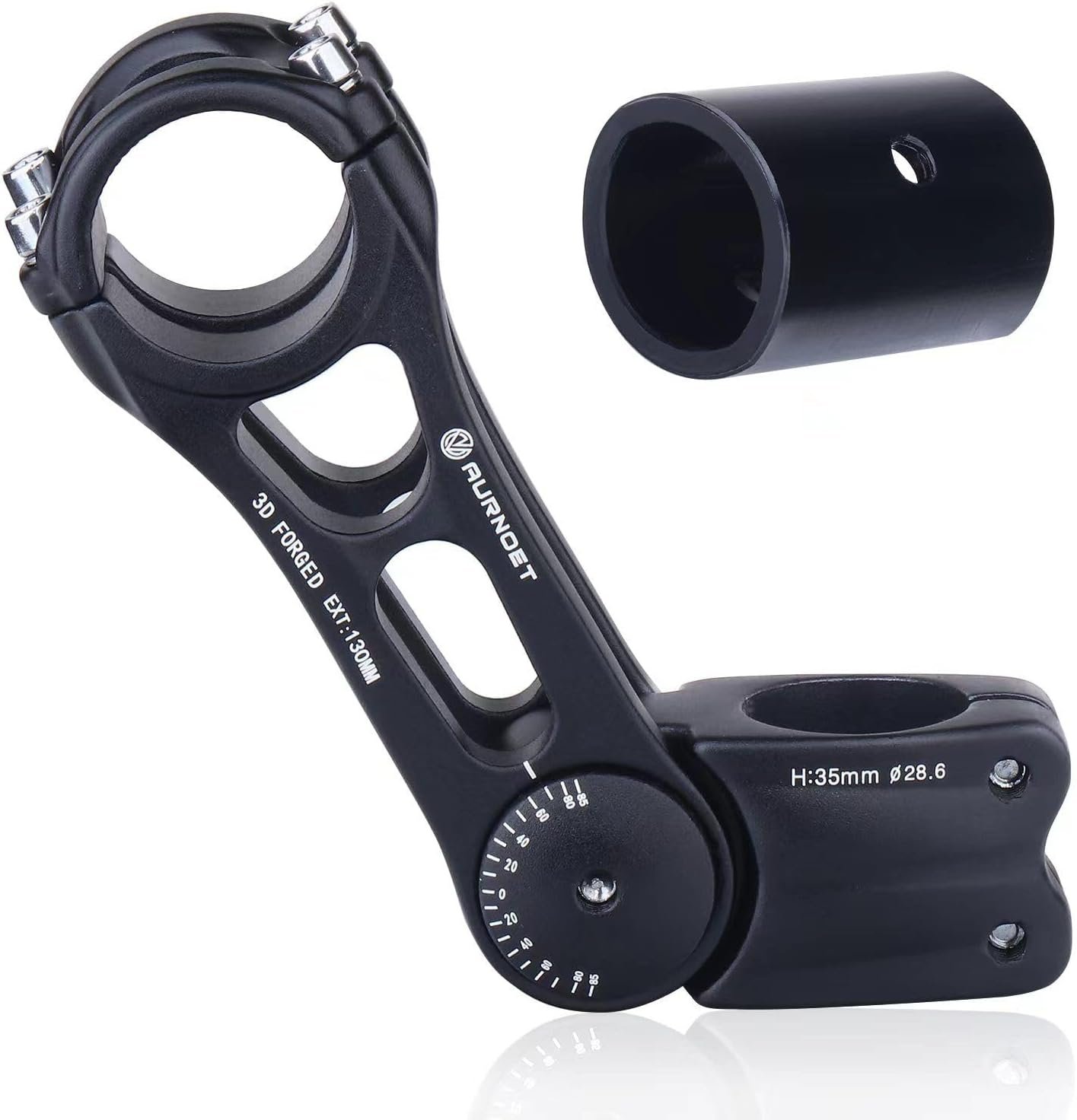 ± 90 Adjustable Angle: -90 °~ +90 ° adjustable stem can help you raise or lower the height of the handlebars while cycling, to find your comfortable ride position. Material: Aluminum Alloy