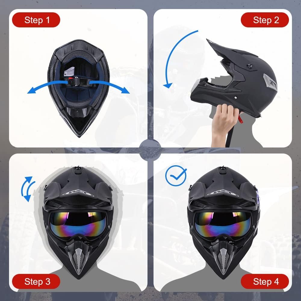 With Goggles Gloves and Mask – OUMURS Dirt Bike Helmet include the goggles, gloves and mask which you need to in driving. Put on the accessory equipment, windproof and UV resistant, can resist the interference of the sun and give you a more clear and wide vision in riding