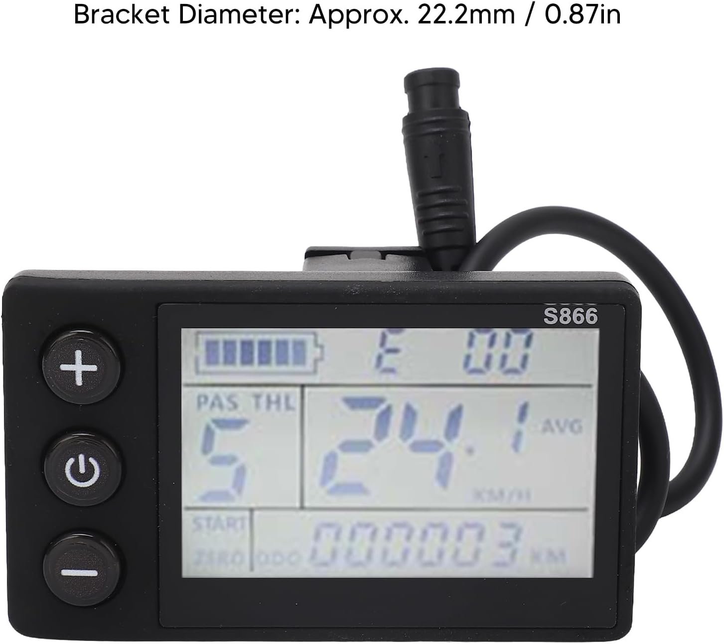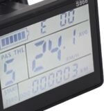 Electric Bike LCD Display: Clearly displays status and data, backlighting lets you see the screen in dimly lit environments, and button operation is quick and easy.Waterproof Design: With IP65 waterproof level, this LCD display is well protected from rain and splashing water.Compatible Voltage: Works with 24V, 36V, 48V, and 60V electric bike systems, providing wide compatibility.Easy Installation: The bracket diameter is 22.2mm, making it compatible with most electric bikes for quick and hassle installation.Durable Material: Made from ABS, this LCD display is sturdy and reliable, ensuring long lasting performance.