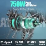 🚲【STRONG POWER】Equipped with 48V 500W(peak 750w) brushless motor generates great power, provids more than enough to power your daily commute, a cruise on the mountain, or a meander along your favorite trail. With speeds up to 22 mph, it will get you there swiftly.