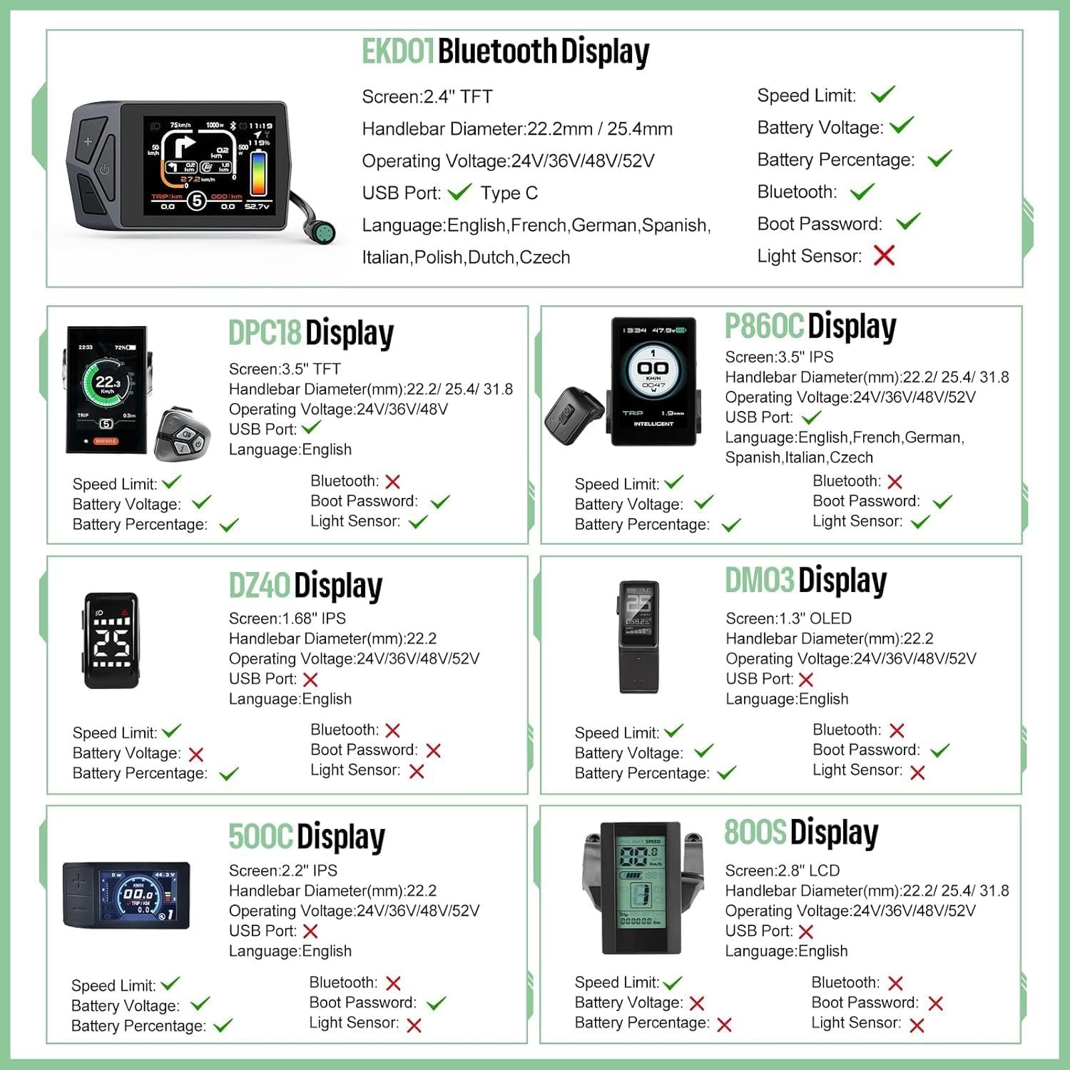 Customizable Display Options :Tailor your riding experience with premium displays compatible with this BAFANG Rear Hub Motor Kit. Choose from 500C, DPC18, P860ML, and more to monitor speed, battery, and PAS levels. Each display integrates seamlessly with the Rear Wheel motor, providing real-time data for smarter, safer rides