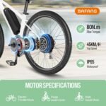 Powerful Performance: Experience unmatched speed and torque with the BAFANG 48V 750W Rear Hub Motor Kit, designed for both Electric Bike Conversion Kit enthusiasts and daily riders. Boasting 80N.m max torque and 45KM/H top speeds, this Rear Wheel-mounted motor delivers thrilling acceleration while maintaining a quiet (55dB) and waterproof (IPX5) design. Bafang’s trusted reputation ensures reliability for every adventure