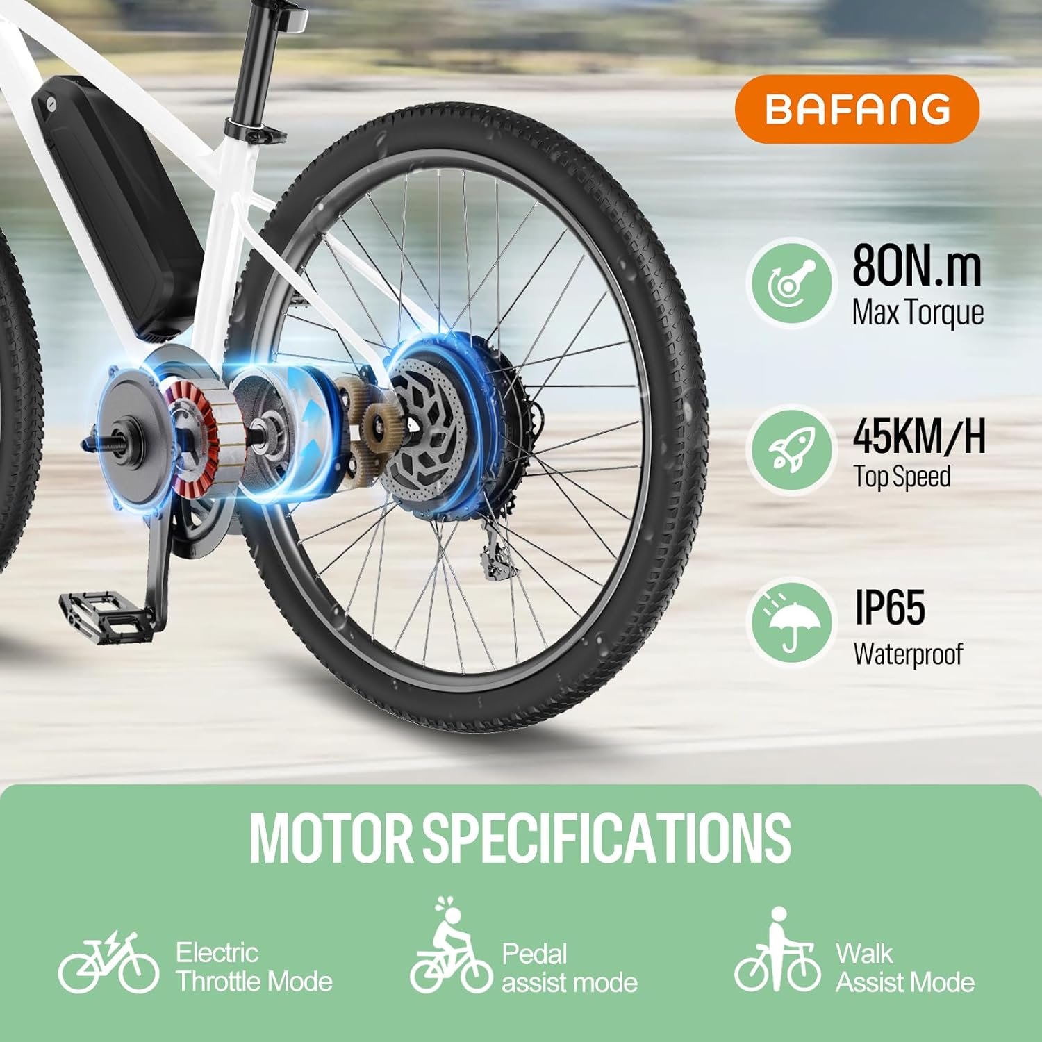 Universal Compatibility:Transform your bike into an electric powerhouse with this BAFANG Rear Hub Motor Kit compatible with Electric Bike Conversion Kit systems. Fits bikes with 135-142mm rear dropouts and 10-speed cassettes, supporting V-brake/disc brake setups. The intelligent PAS system offers 4 riding modes, reducing fatigue on long trips. Perfect for DIY enthusiasts upgrading their Rear Wheel for versatile, all-weather commuting