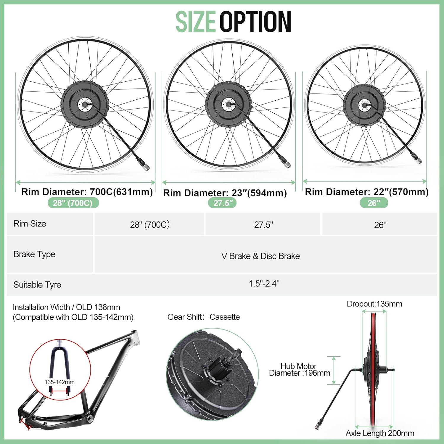💡1. Please kindly note that the rear OLD of your bike should be 135-142mm . Our motor fit bikes with both disc brakes and V brakes .