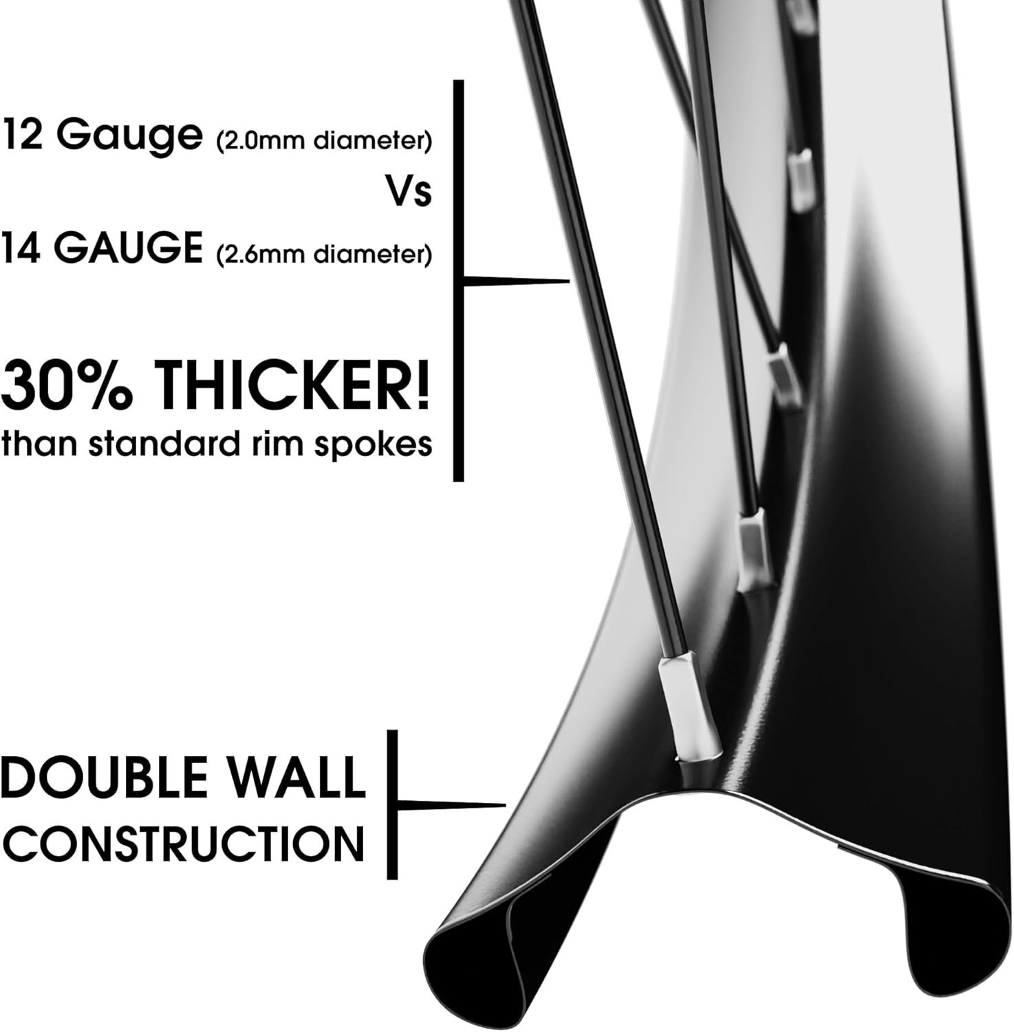 HEAVY-DUTY-SPOKES: Built for rugged performance, the rear rim is equipped with 26in heavy-duty spokes that provide additional strength and durability. The robust spokes enhance the overall resilience of the wheel, making it capable of handling rough terrains and heavy loads, ensuring a reliable and safe riding experience
