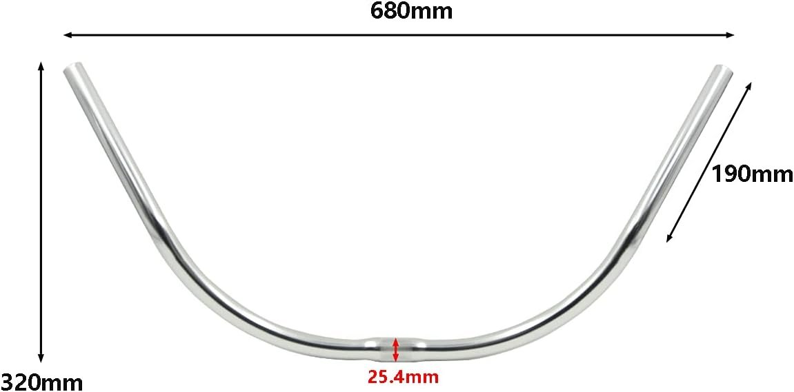 A lovely handlebar that will look great on retro builds or modern bikes. Specifications Color: Silver Material: Aluminum Alloy Use: Beach Cruiser Bike Bar End Outer Diameter: 22.2mm Handlebar Length: 680mm/26.77inch Clamp Diameter (the middle of the handlebar): 25.4mm Package Included 1 X Bike Handlebar