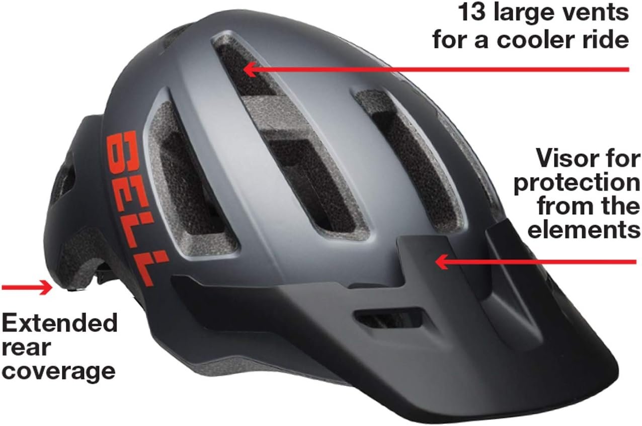 Step up your riding experience with the Bell Soquel bike helmet. The Bell Soquel bike helmet comes equipped with extended rear coverage and air-channeling vents to keep you cool while you adventure down the open road, through the woods or around town. The tapered design and sun protecting visor make this your go to helmet for your next adventure ripping through the urban jungle or mountain trails.  Fits head size 54-58cm. Recommended for ages 8-14.
