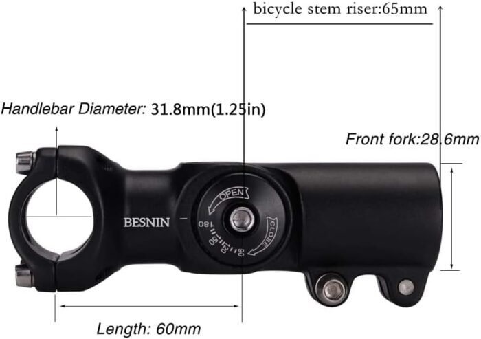 Advantages 4:.If your mountain bike has limited handlebar adjustment and with the seat at the correct height, the handlebars were far too low making it almost impossible to look behind you. then you need this 0-90° adjustable bike stem to solve this problem.