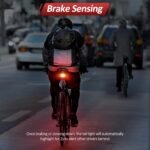 𝑭𝒐𝒖𝒓 𝑳𝒊𝒈𝒉𝒕 𝑴𝒐𝒅𝒆𝒔 & 𝑼𝒍𝒕𝒓𝒂-𝑩𝒓𝒊𝒈𝒉𝒕 𝑳𝒆𝒅: There are 4 light modes for your choice, Slow Flashing/Breathing/Fast Blinking/Steady Light. Slow flashing and breathing are intelligent modes, while fast flashing and stable light are normal modes. The High Lumen COB LED Bike Tail Light makes you more visible and is the perfect bike light for night riding.