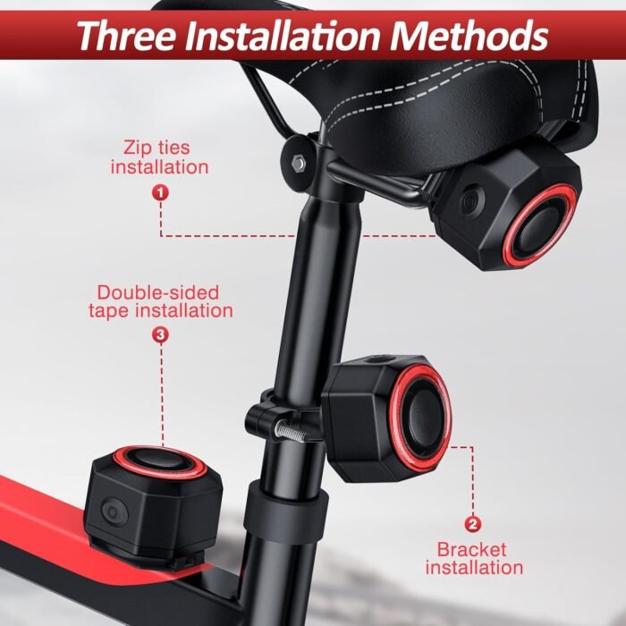 𝑴𝒖𝒍𝒕𝒊𝒇𝒖𝒏𝒄𝒕𝒊𝒐𝒏 𝑩𝒊𝒄𝒚𝒄𝒍𝒆 𝑨𝒍𝒂𝒓𝒎: It’s an all-in-one bike alarms for ebikes/bike tail light/bike brake light/bike horn. It has various functions such as loud alarms, motion detection and remote control. Not only is it a security device to protect your bike from theft, but it can also be used as a bike light for night riding. Suitable for bicycles, motorcycles, electric bikes, electric scooters, doors and windows.