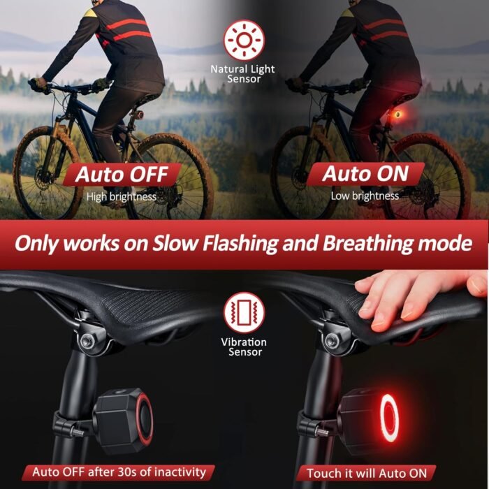 𝑺𝒎𝒂𝒓𝒕 𝑨𝒖𝒕𝒐 𝑶𝒏/𝑶𝒇𝒇 & 𝑩𝒓𝒂𝒌𝒆 𝑺𝒆𝒏𝒔𝒊𝒏𝒈 𝑨𝒅𝒗𝒂𝒏𝒄𝒆𝒎𝒆𝒏𝒕: Our ebike alarm equipped with motion and light sensors. In intelligent mode, it will automatically switch off after 30 seconds of inactivity. The light comes back on as soon as movement is detected or the bike is in motion.If there is a braking action during driving, the tail lights will light up in red for 2 seconds to remind other drivers.