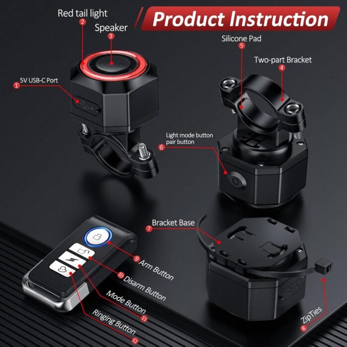 Category: Brakes Tags: 110dB, Alarm, Anti, Auto, Bicycle, Bike, Brake, E-Bike Brakes, Ebike, IP65, Light, Motion, ONOff, Rechargeable, Remote, Scooter, Sensor, System, Tail, Theft, USBC, Vibration, Waterproof