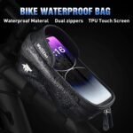 【Waterproof & Dual Zippers】Bike bag has excellent waterproof performance with PU Laminated Waterproof Double Zipper and High-Quality Waterproof Material. The bike bags for bicycles include a rain cover that gives double protection and keeps your belongings dry even on rainy days and in extreme environments. The bike phone holder with a hidden earphone hole allows you to answer the phone or enjoy music freely while cycling.