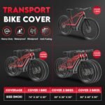 | Bike Cover for 2 Bikes Transportation | – Measures 80″ x 36″ x 50″ (L x W x H), this bicycle cover is designed to accommodate up to 2 bikes with full protection for outdoor journey, including: electric bike, road bike, mountain bike, hybrid bike, beach cruiser bike, and more. Note: For better coverage, please arrange your bikes in opposite orientations (front to back).