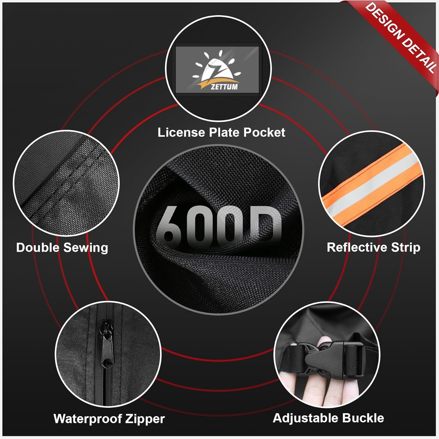 | 600D Heavy-Duty & Super Waterproof | – Made of Premium 600-Density oxford cloth with PU coating, Zettum bike covers for transport on rack are extremely heavy-duty and super waterproof. Compared with PVC-type covers, our bicycle transport covers are more durable and hard to be torn after every long-distance travel. You truly get what you pay for!
