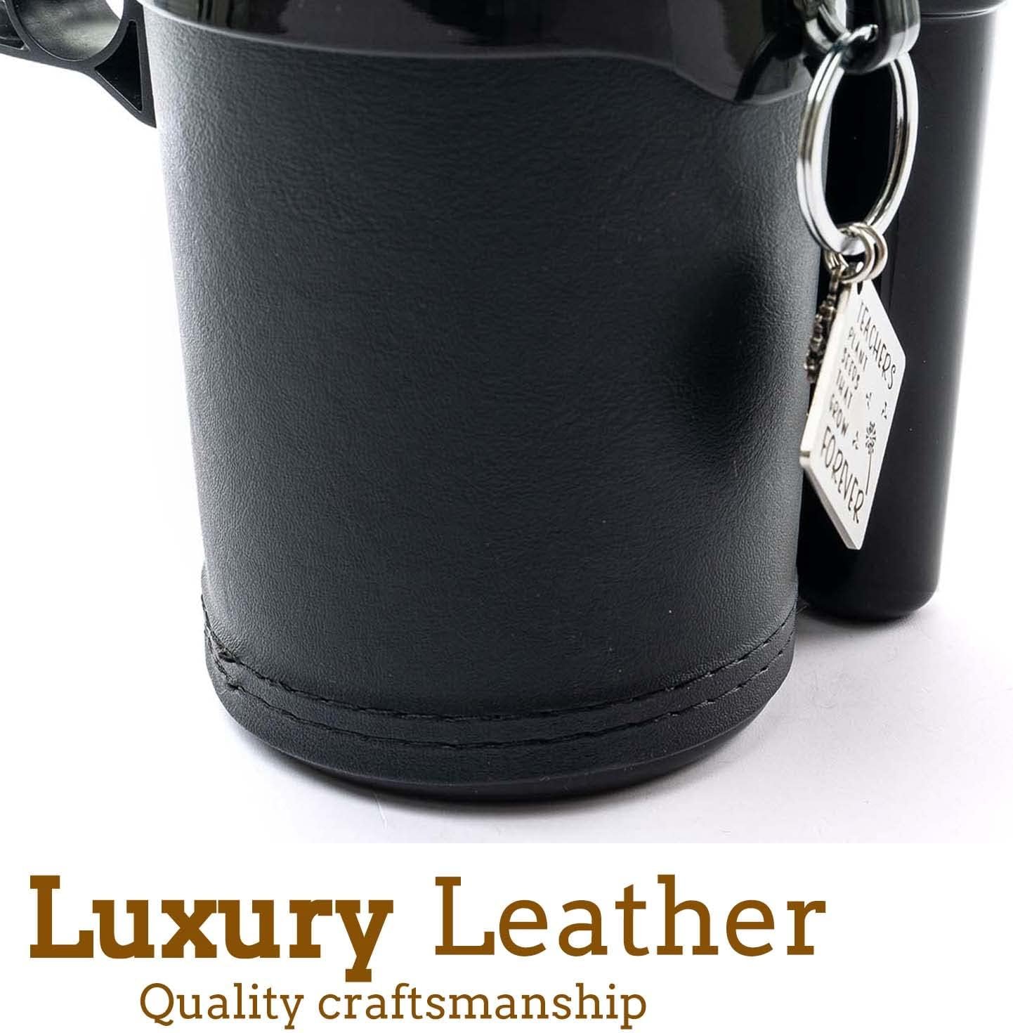 The bicycle drink holder wrapped with leather skin, double stitched to the cup holder for bike, which is safe, odor-free and more durable.