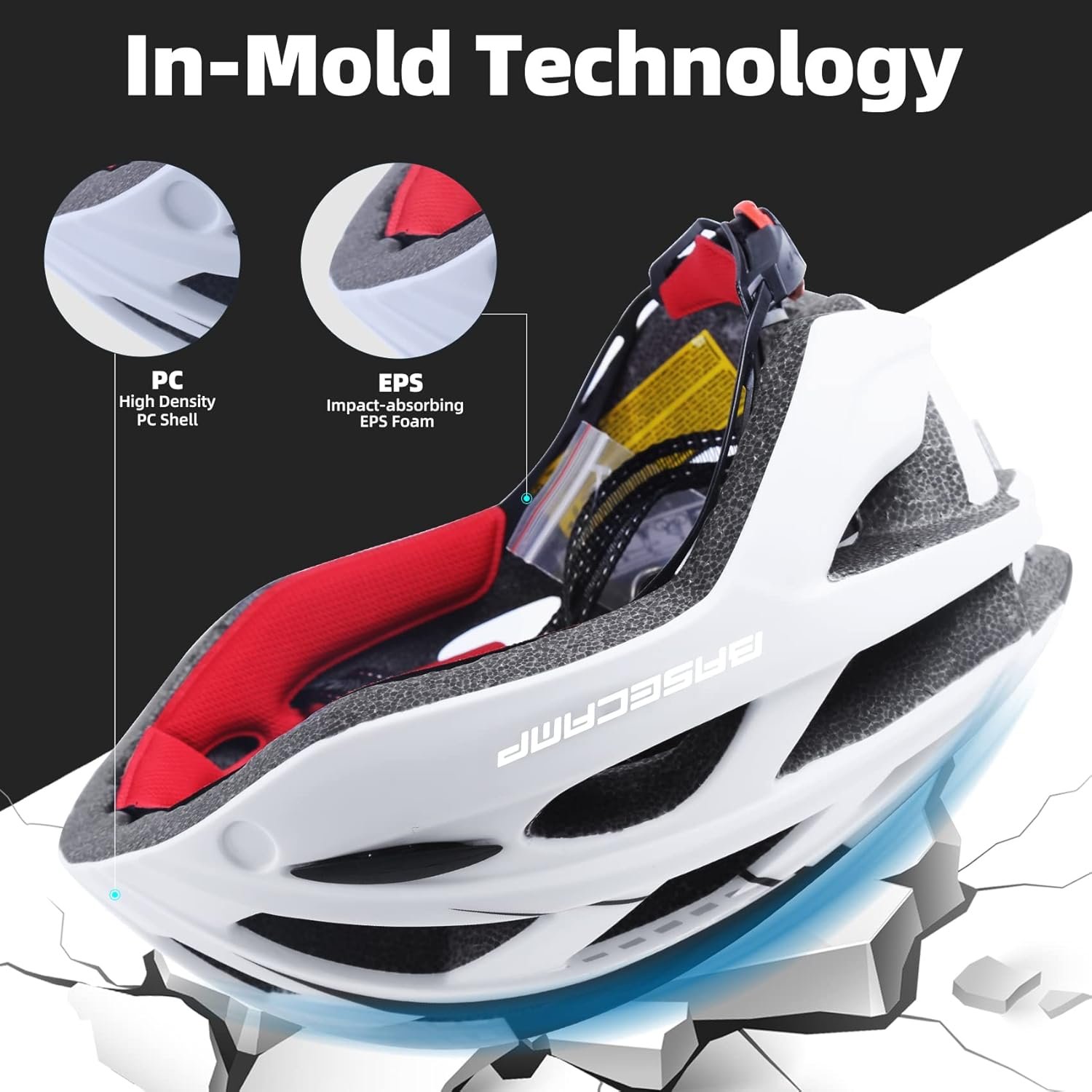 High Safety Protection: Basecamp bike helmet meets US cycling standard. With superior in-molding technology, bicycle helmet made of high-density PC shell and EPS foam is helpful to absorb and decrease the pressure caused by external impact forces, and protect your head in all directions during crash. Adults wear our bike helmet will feel Safer and more comfortable