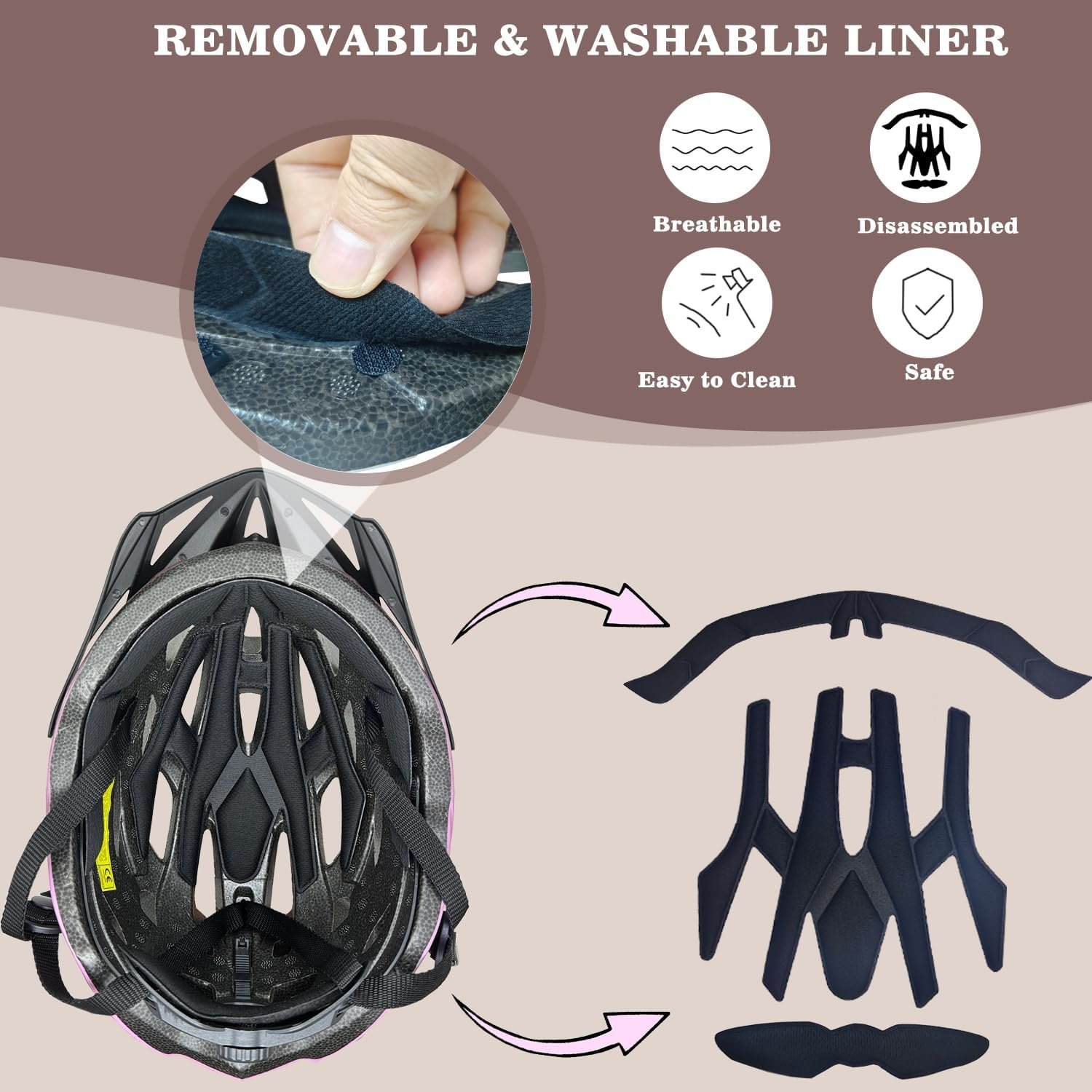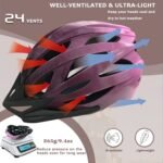 BIKE HELMET WOMEN ADULT – Designed with 24 vents to keep you cool during long bike rides. The breathable inner pads of cycling helmet that can be removed, wash to keep clean. Bike helmet weight is only 250-275 g, which means riding and carrying no burden, also comfortable to wear