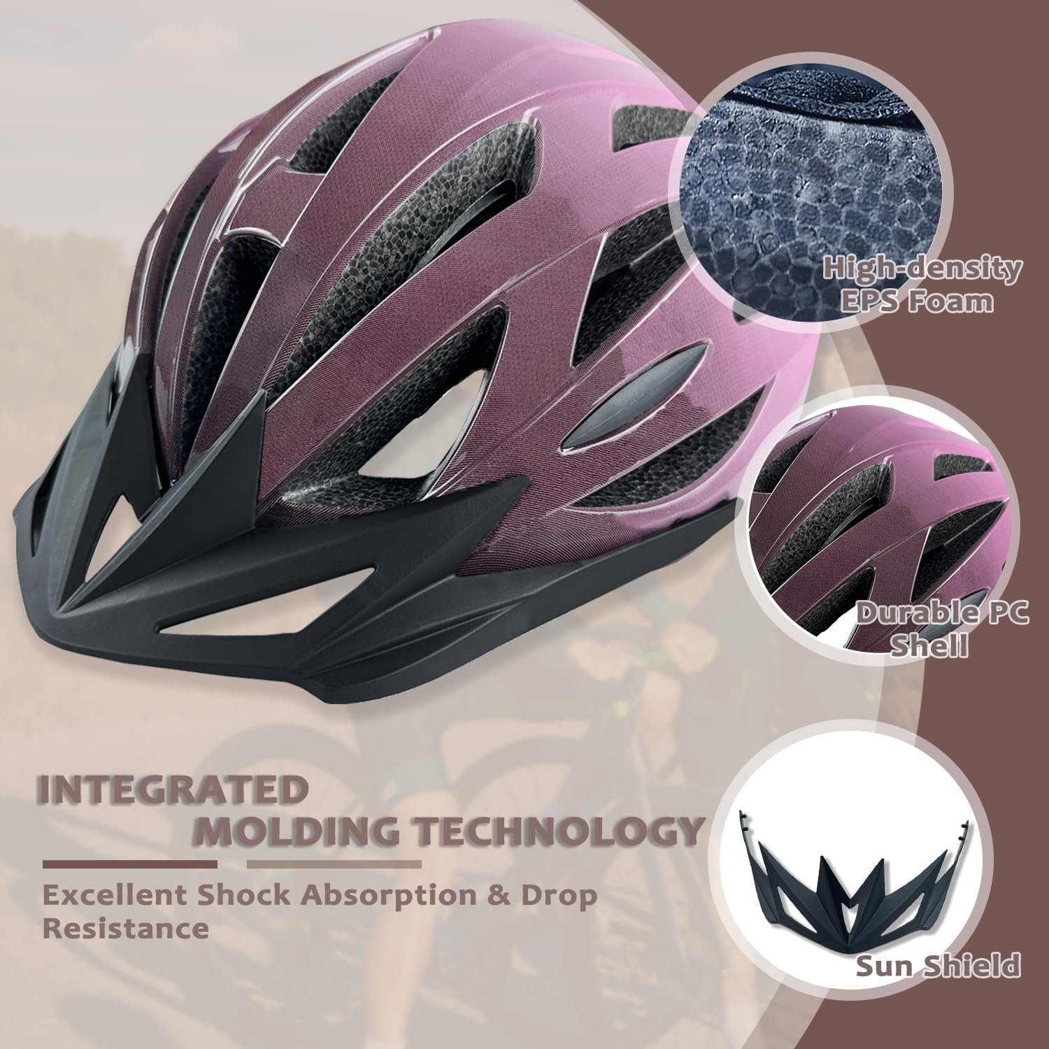 IMPACT RESISTANCE – Made of high density and durable PC, EPS foam that absorbs the impact and effectively reduces the shock pressure to keep your head protected while riding your bicycle