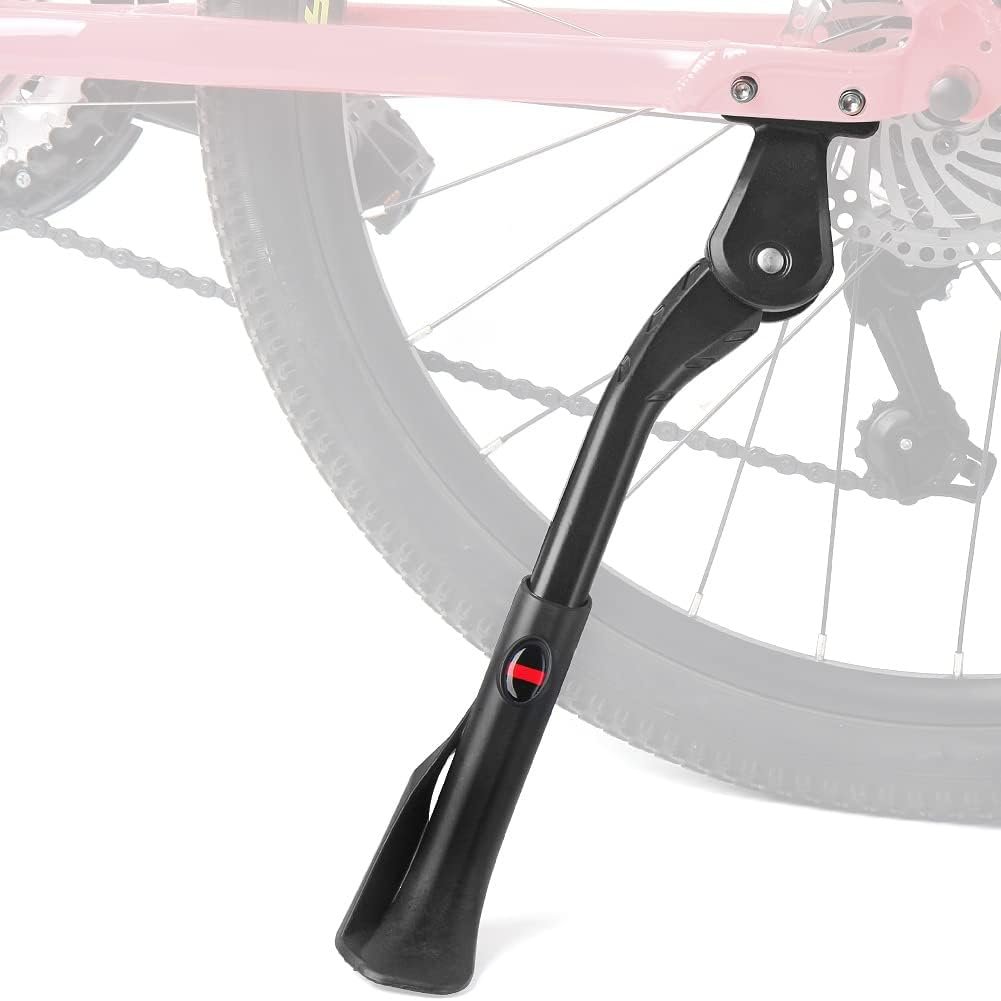 The height of the kickstand is adjustable by an adjustable screw at the back of the kickstand.You could adjust the height according to your bike size to achieve a better balance when you need to park the bike.