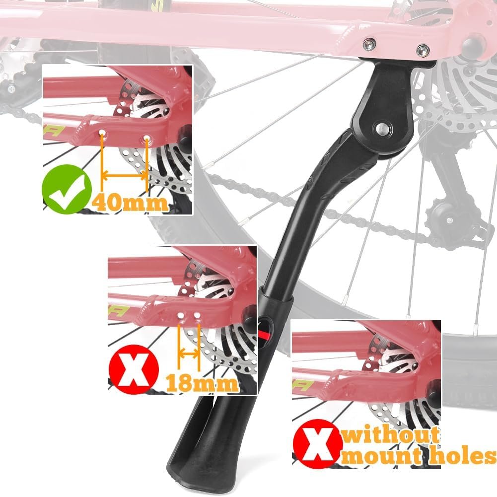 Sataway rear mount kickstand is suitable for bikes with mounting holes at the chainstays and the holes must have a distance of 40mm.(Bikes without holes at the chainstay could not use this product.)