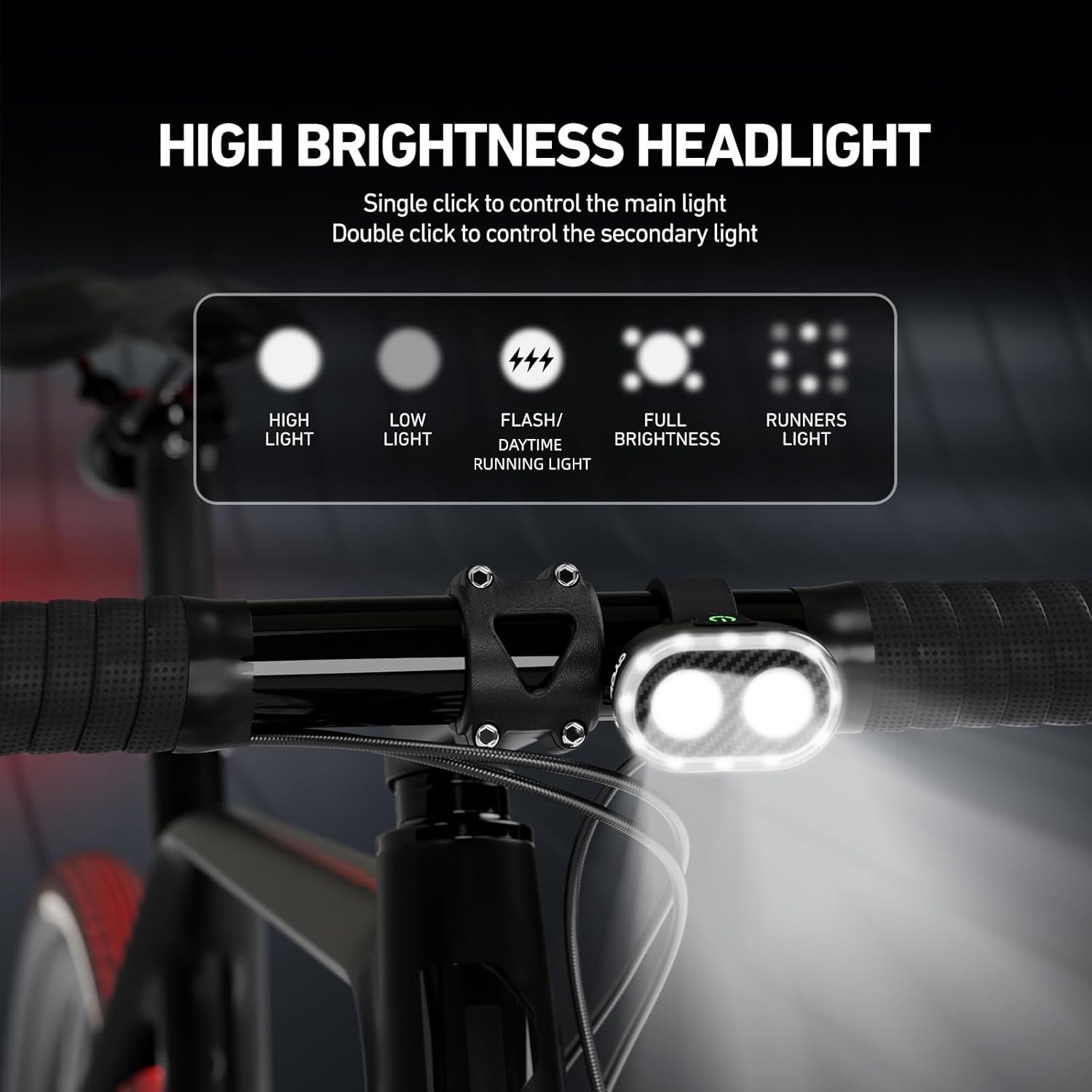 【INNOVATIVE DIY LIGHTING MODE】The bike headlight has 11 lighting modes and the taillight has a total of 20 lighting modes; With outstanding visibility, riders behind you can easily find you, and the non-dazzling breathing flash mode increases overall safety