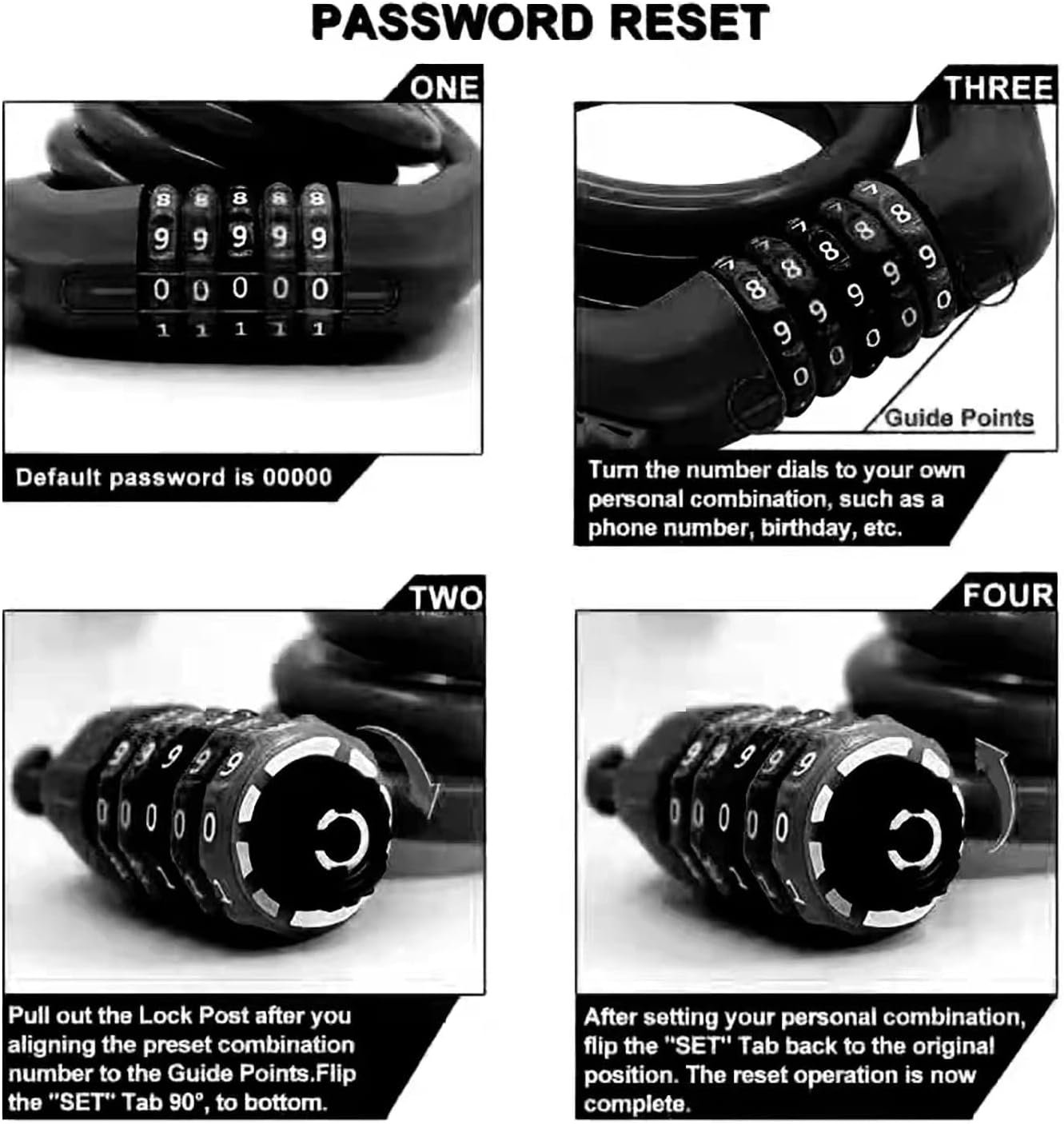3. The 5-digit combination allows 100,000 possibilities. Making this lock nearly. Impossible to crack. It will take more than 80 hours to crack the combination. And set and reset your combination is very easy, we have a manual in package you can learn to set yours in no time.