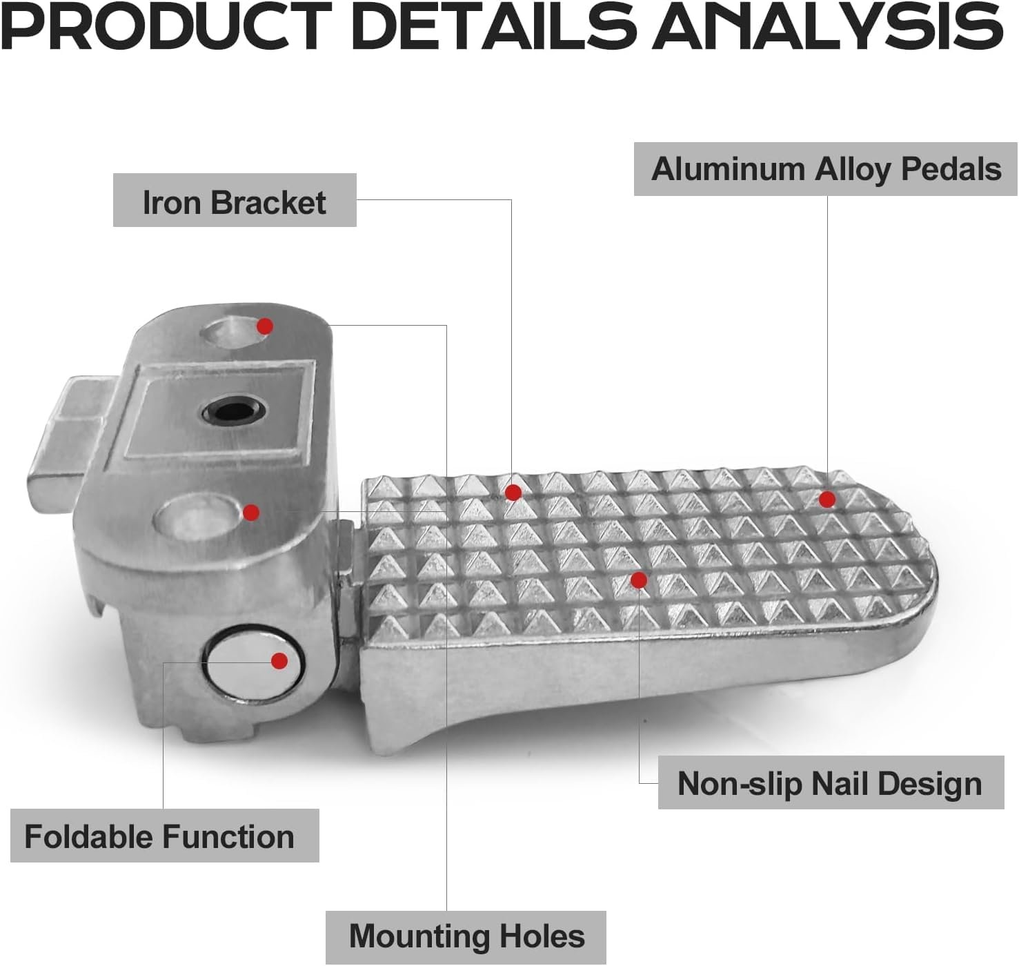 Multi-Vehicle Versatility – Functions as passenger pegs for ebikes, dirt bike pegs, or mini bike accessories. Choose between stealthy black or metallic silver to match your ride’s aesthetic.