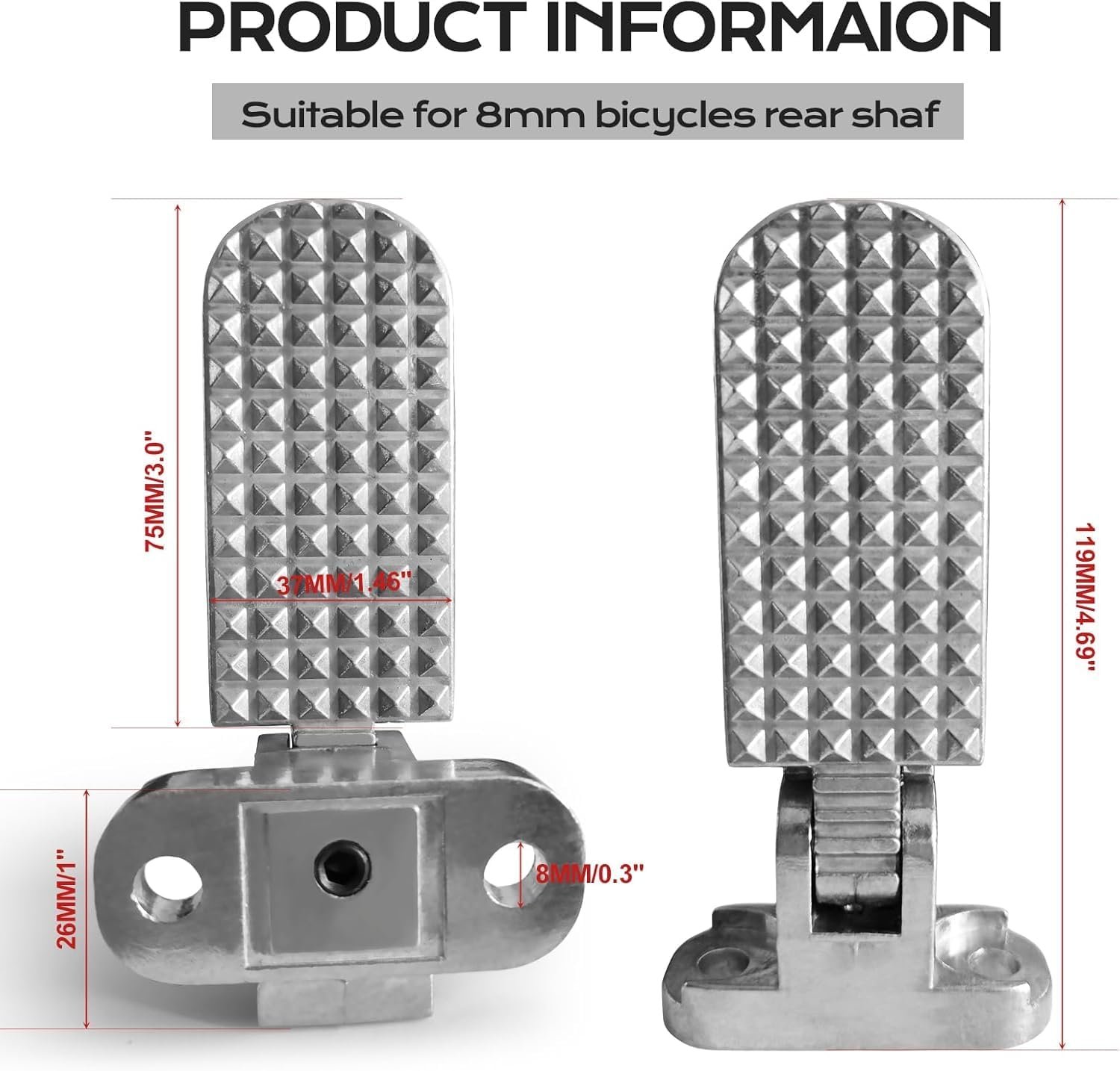 Heavy-Duty & Universal Fit – Crafted from aircraft-grade aluminum, these bike pegs withstand 330lbs weight. Universal mounting holes perfectly fit bikes, ebikes, motorcycles and scooters, providing rock-solid foot support for passengers.