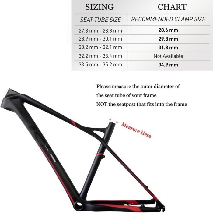 Selection of parameters-31.8mm Bike Seat post clamp apply for out diameter 30.2mm to 32.1mm bicycle frame seat post. 34.9mm Bicycle Seat post clamp suit for out diameter 33.5mm to 35.2mm bike frame seat tube .