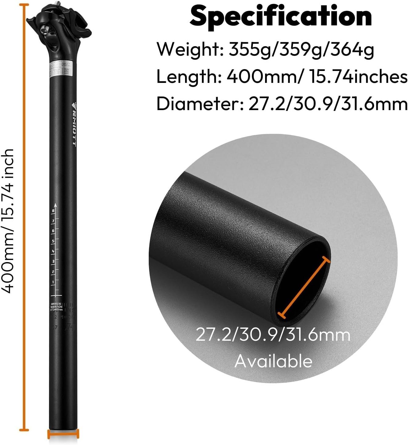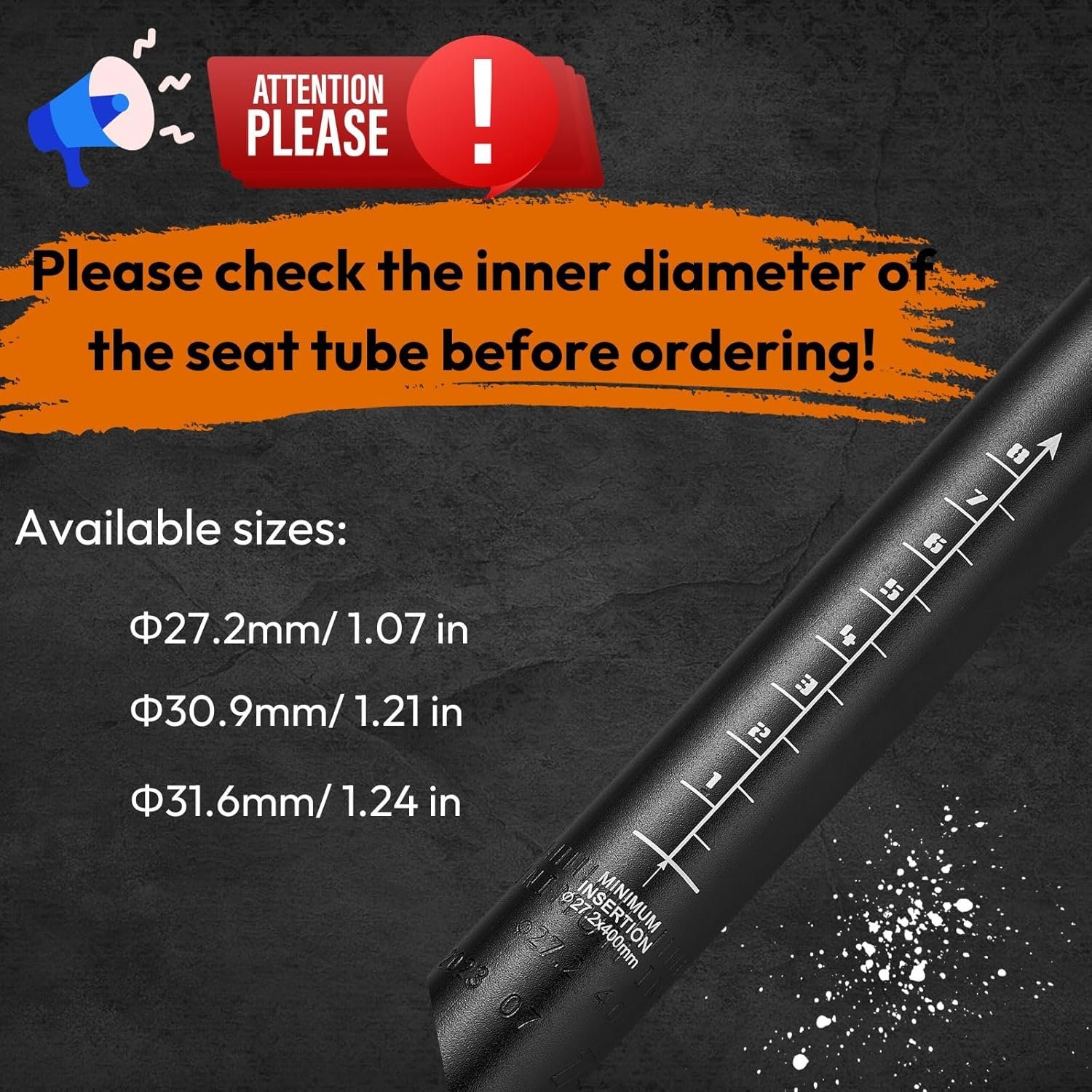 𝑫𝒊𝒂𝒎𝒆𝒕𝒆𝒓-Available in three diameter options– 27.2 mm, 30.9 mm, and 31.6 mm. Please ensure compatibility with a wide range of bicycle frames. The correct diameter should be selected to achieve a secure fit within the frame’s seat tube.