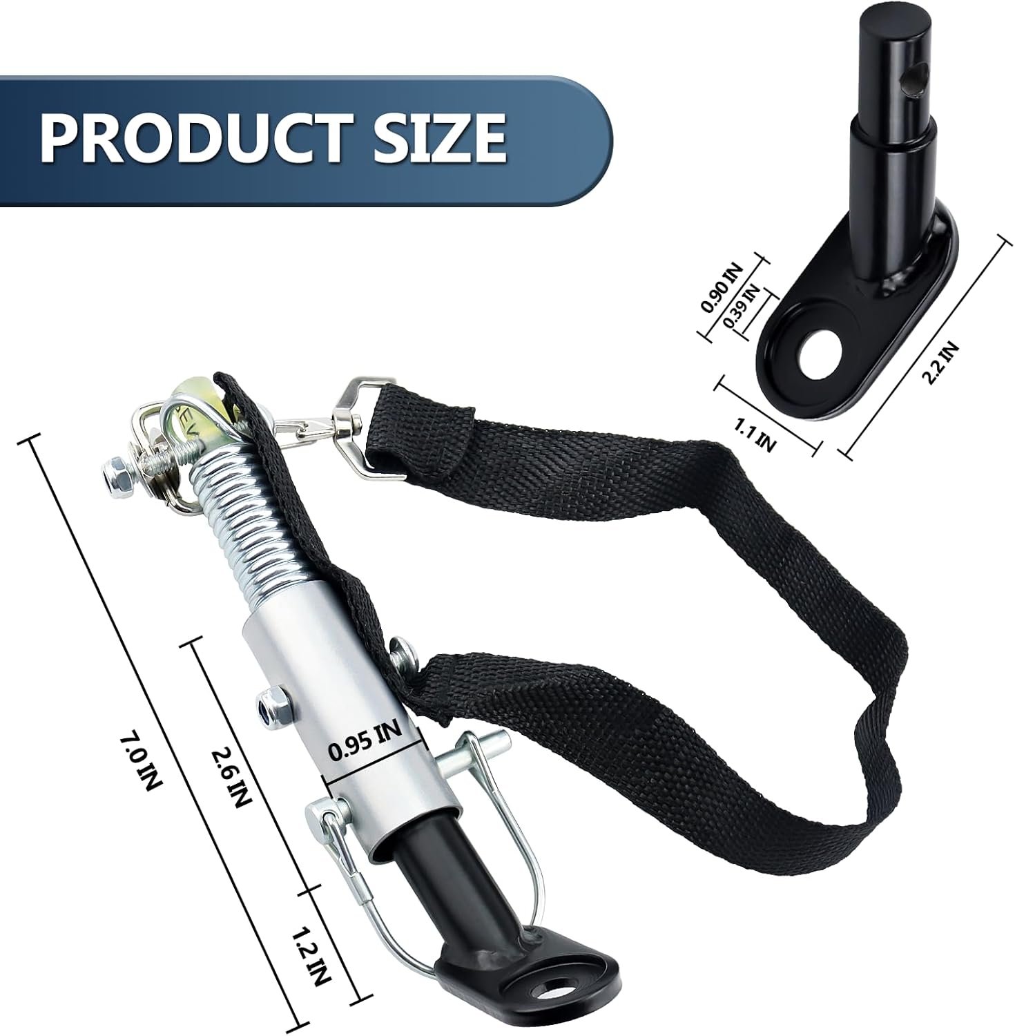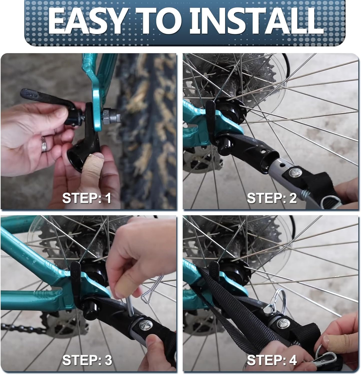 ➽【 EASY INSTALLATION 】:1.Fix the bike trailer hitch on your bike with a screw nut. 2.Insert the trailer attachment. 3.Put the pin on.Each bicycle trailer coupler is equipped with a separate connecting pin, the pins are difficult to open, and once installed, they will not fall off easily.!!!Please notice the size of the shaft diameter is 0.59in, please check your size before buying