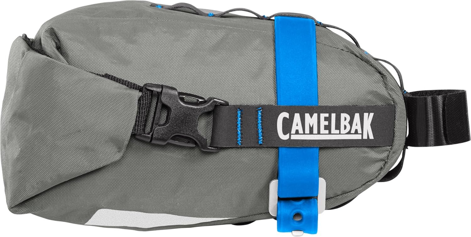 The CamelBak M.U.L.E. 1 Saddle Pack is built for days when you need to pack it all without breaking a sweat. Featuring an expandable storage capacity that adapts to your needs and a recycled sailcloth construction, it’s a sleek and streamlined way to carry everything you need out on the trail. The IPX5 waterproof rating ensures your gear stays dry, while easy access and secure attachment keep everything close at hand and firmly in place. The roll-top expandable capacity allows for flexible packing, and reflectivity enhances visibility for safety.