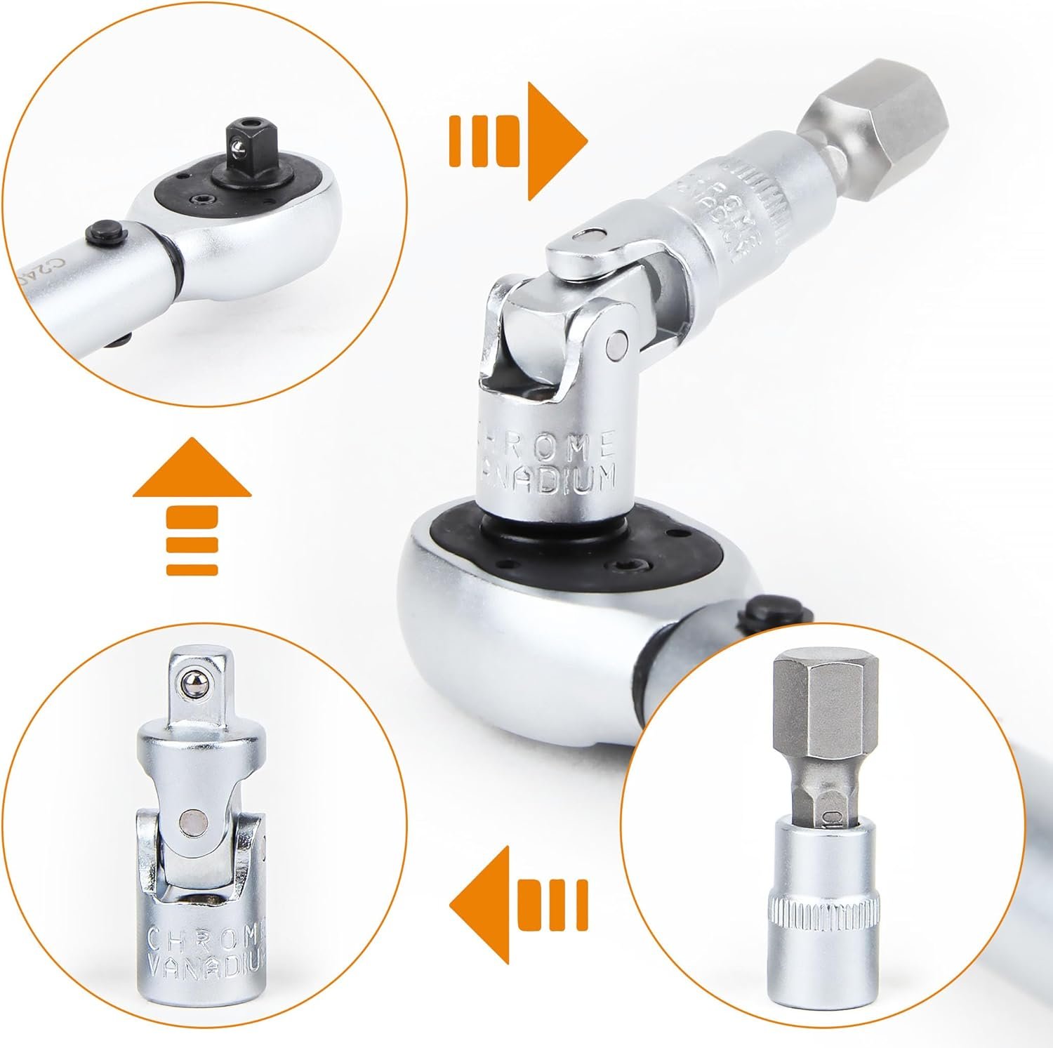 Hard-wearing&Long-lasting: Made with chrome vanadium alloy steel, the reinforced ratchet gear head offers strong rust and corrosion resistance.