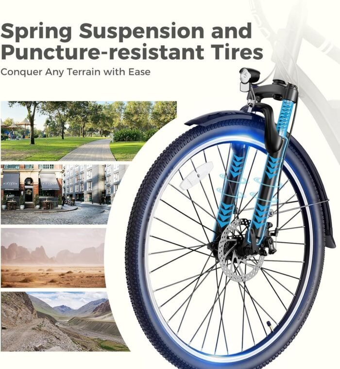POWERFUL BRAND MOTIVE: YOLOWAY Adult Electric Bicycle, equipped with a high-performance 1000W motor, delivers immense power with a maximum speed of 22 MPH and a torque of up to 45 Nm. Whether on flat roads or steep uphill climbs, it can handle them all effortlessly, providing you with a thrilling riding experience.