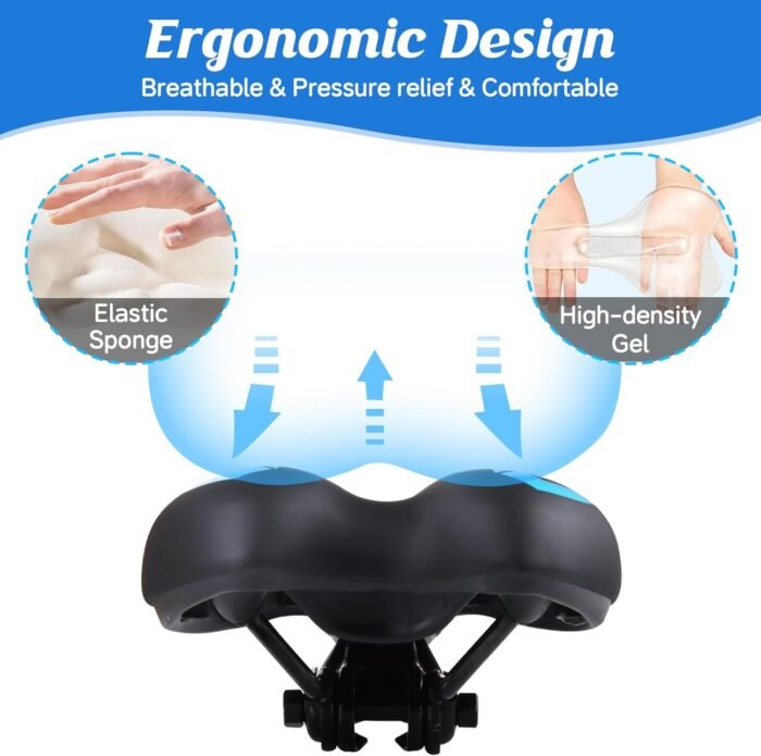 【Comfortable & Ergonomic Design】This bike seat has a non-slip, wear-resistant PU leather surface. Its high-density gel core and elastic foam provide superior comfort over plastic. The durable gel material protects your hips, while the thick design reduces riding pressure. Enjoy a pain-free ride