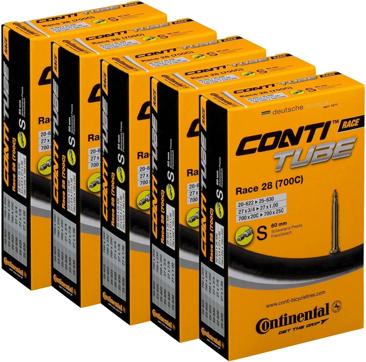 Pack of 5 Continental Bicycle Tube with 60mm Presta valve. The Continental quality road inner tube is a must have cycling essential for 700c bike wheels.